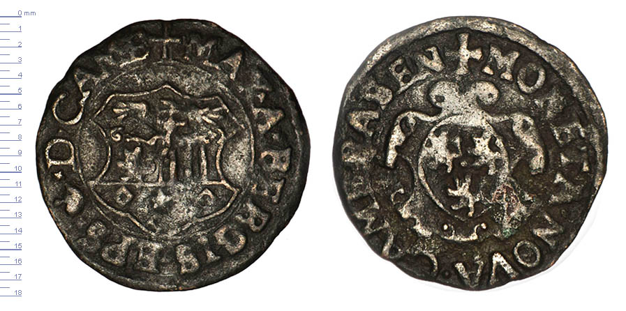 Evêché, puis archevêché de Cambrai, Maximilien de Berghes (1556-1570) : Mitte de cuivre, var. lég. ''... camerasen'' (Rob 22, 6v)