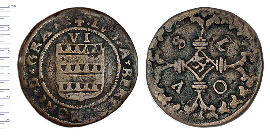 Evêché, puis archevêché de Cambrai, Louis de Berlaimont (1570-1596) : VI deniers de cuivre