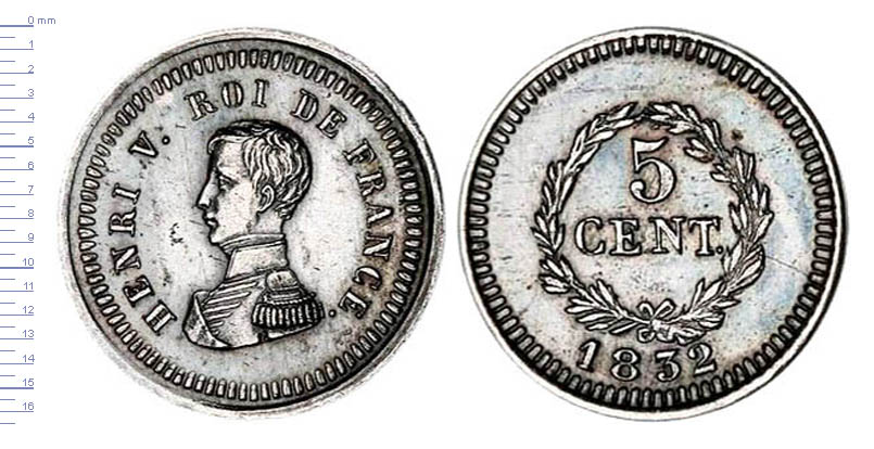 5 CENT. Henri V, buste habillé