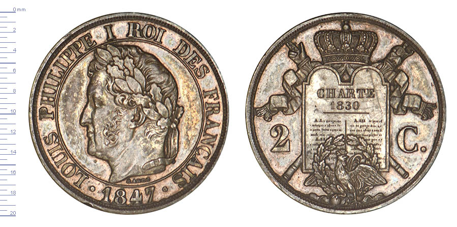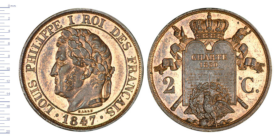 2 C. (CENTIMES) Louis Philippe I, type à la charte de 1830