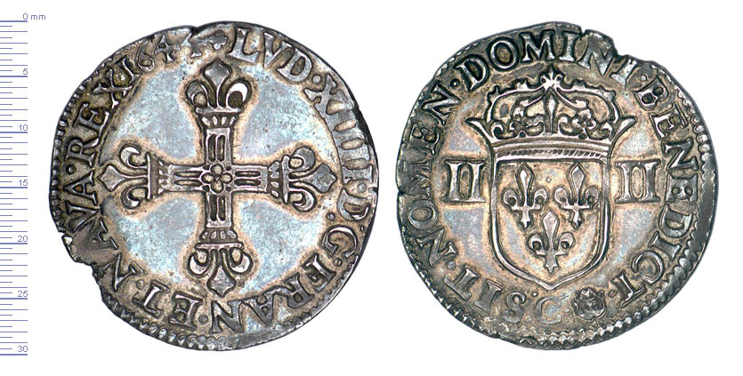 1/4 d'écu, frappé au marteau, croix bâtonnée de face (D 1451, GR 136)