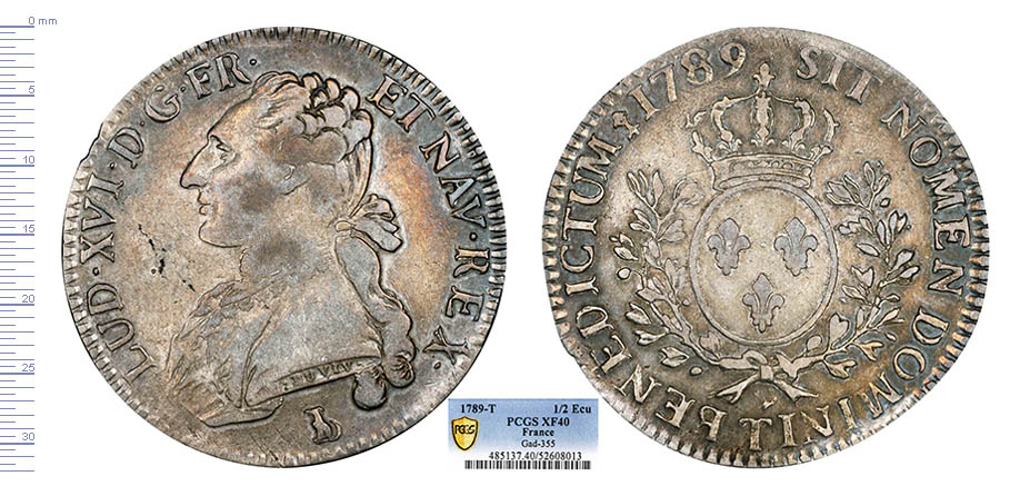 1/2 écu aux branches d'olivier & au buste habillé (D 1709, GR 355, R 7)