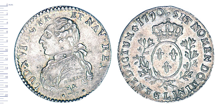 1/10 d'écu aux branches d'olivier & au buste habillé, variété à l'effigie du 1/2 louis (D 1711v, Dr2 621, GR 353b, R 5v)