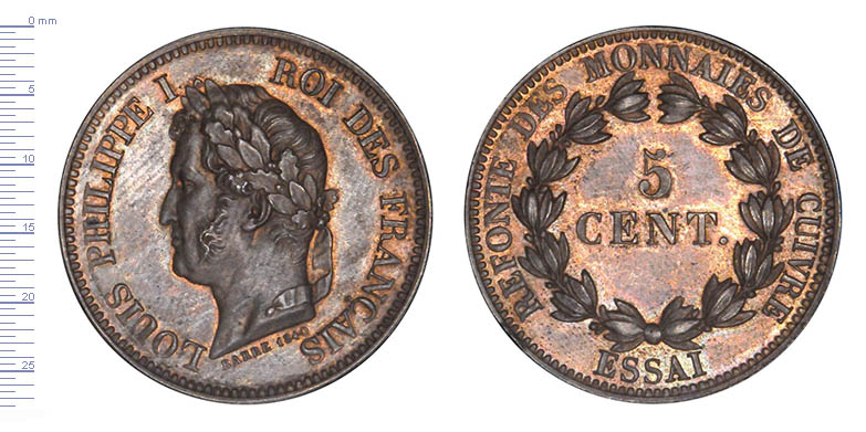 5 CENT. Louis Philippe I, Barre 1840 - revers : Refonte des monnaies de cuivre - 27,5 mm