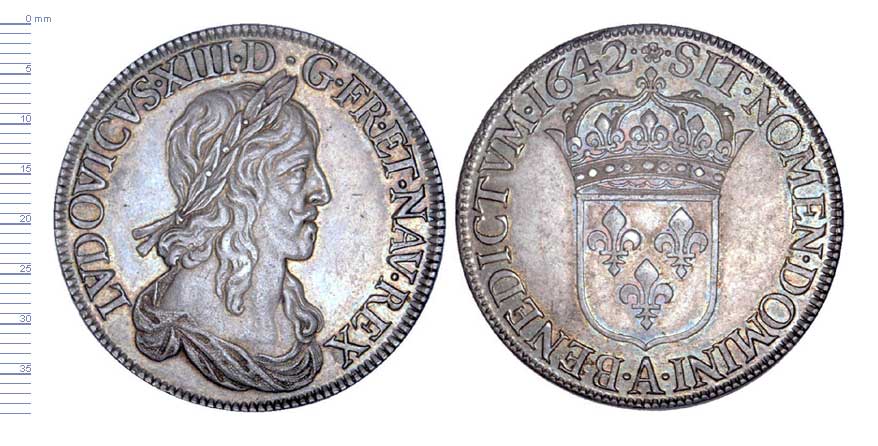 Écu blanc de 60 sols, deuxième poinçon de Warin (DR 62, D 1349, GR 52, Dav# 3797, KM# 129 ) |